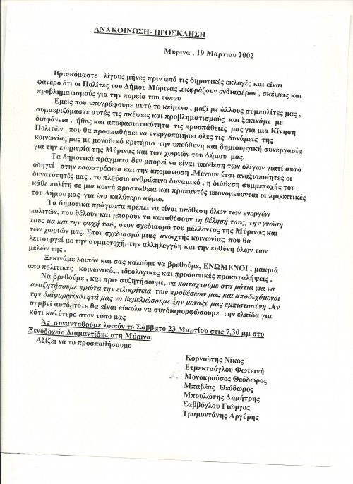 Ανακοίνωση –Πρόσκληση 19-3-2002 -αρχείο
