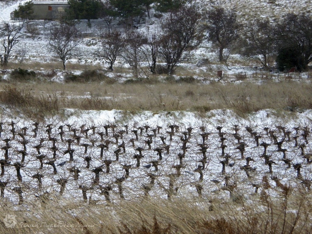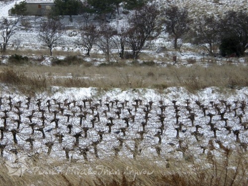 ένα χιονισμένο Αμπέλι
