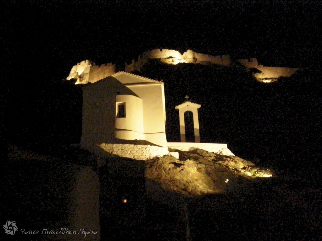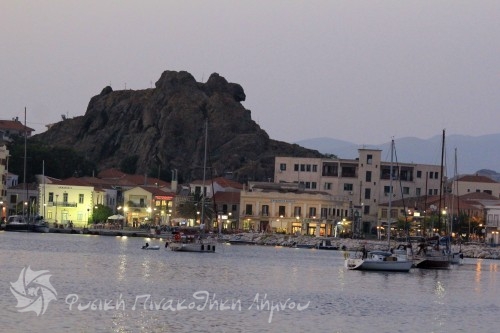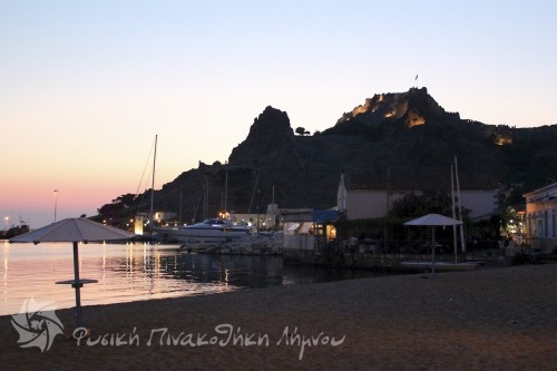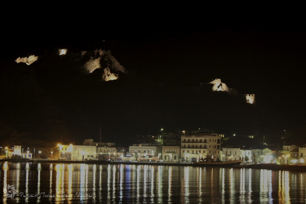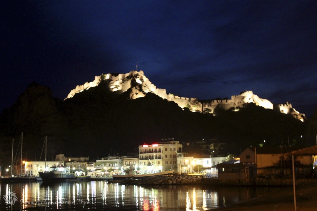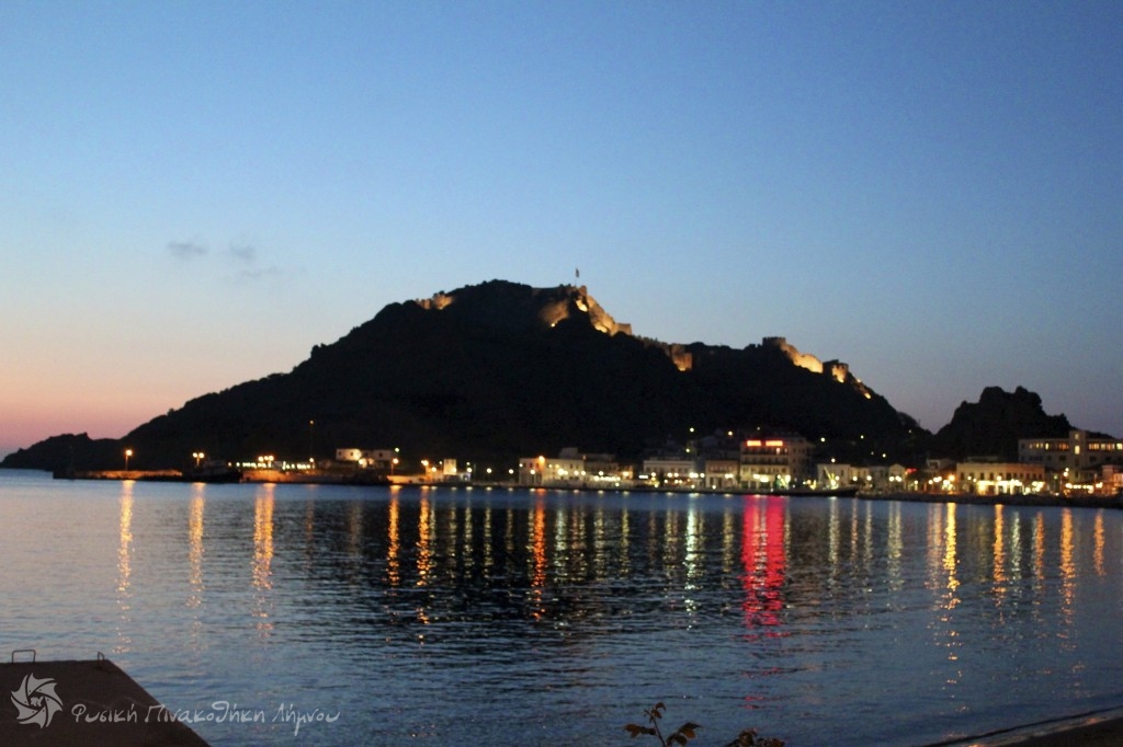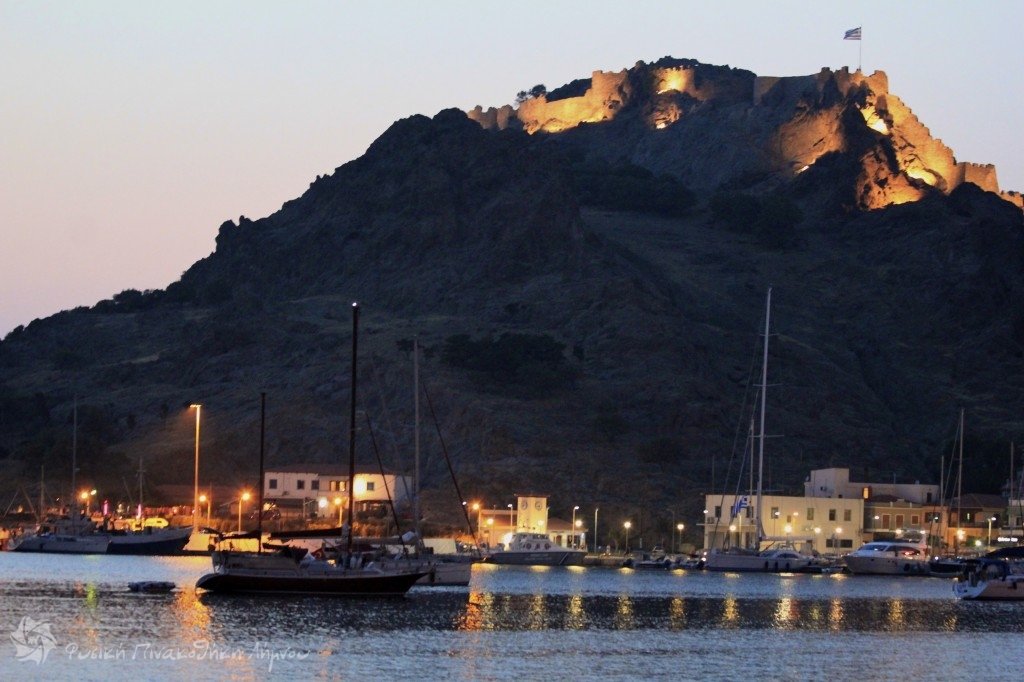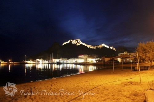 με το Κάστρο φωτισμένο το Λιμάνι της Μύρινας