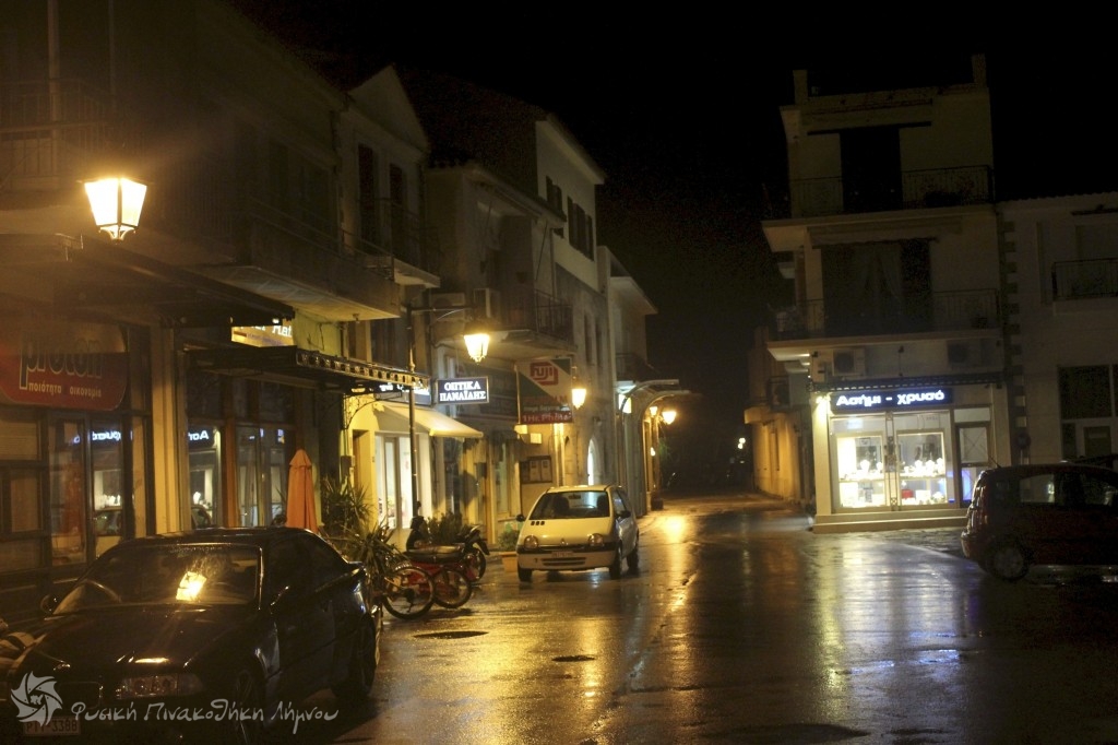 βροχερό βραδινό στη Μύρινα