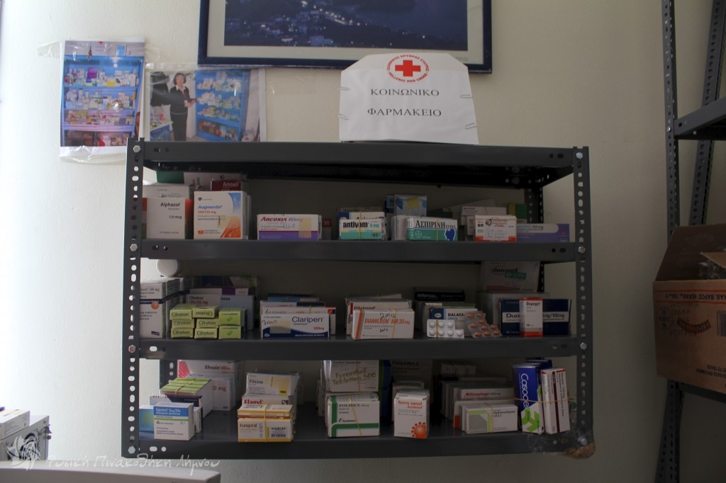 Μια προθήκη του κοινωνικού φαρμακείου του ΕΕΣ Λήμνου στο νοσοκομείο